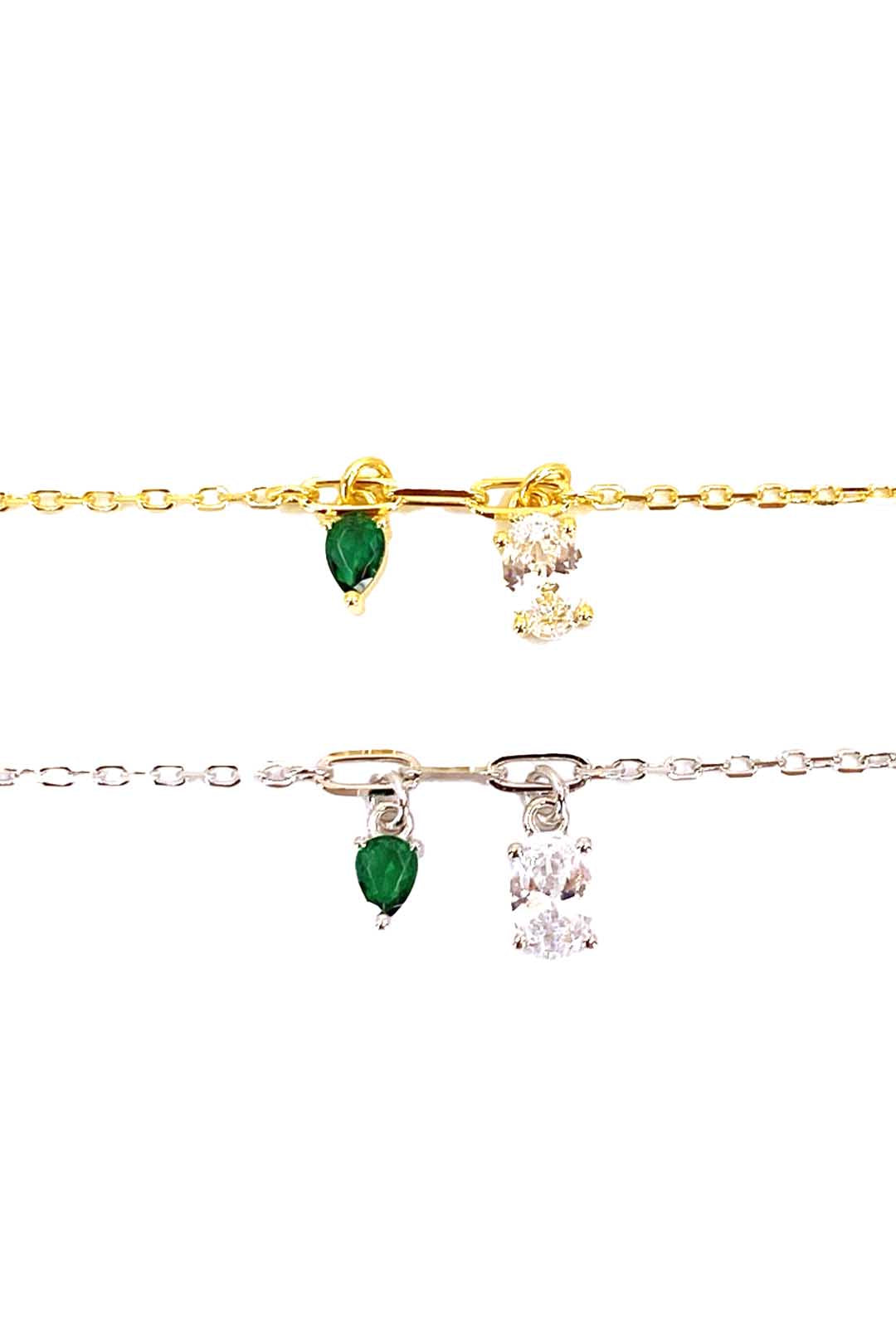 Yeşil Damla Ve Beyaz Oval Gümüş Bileklik