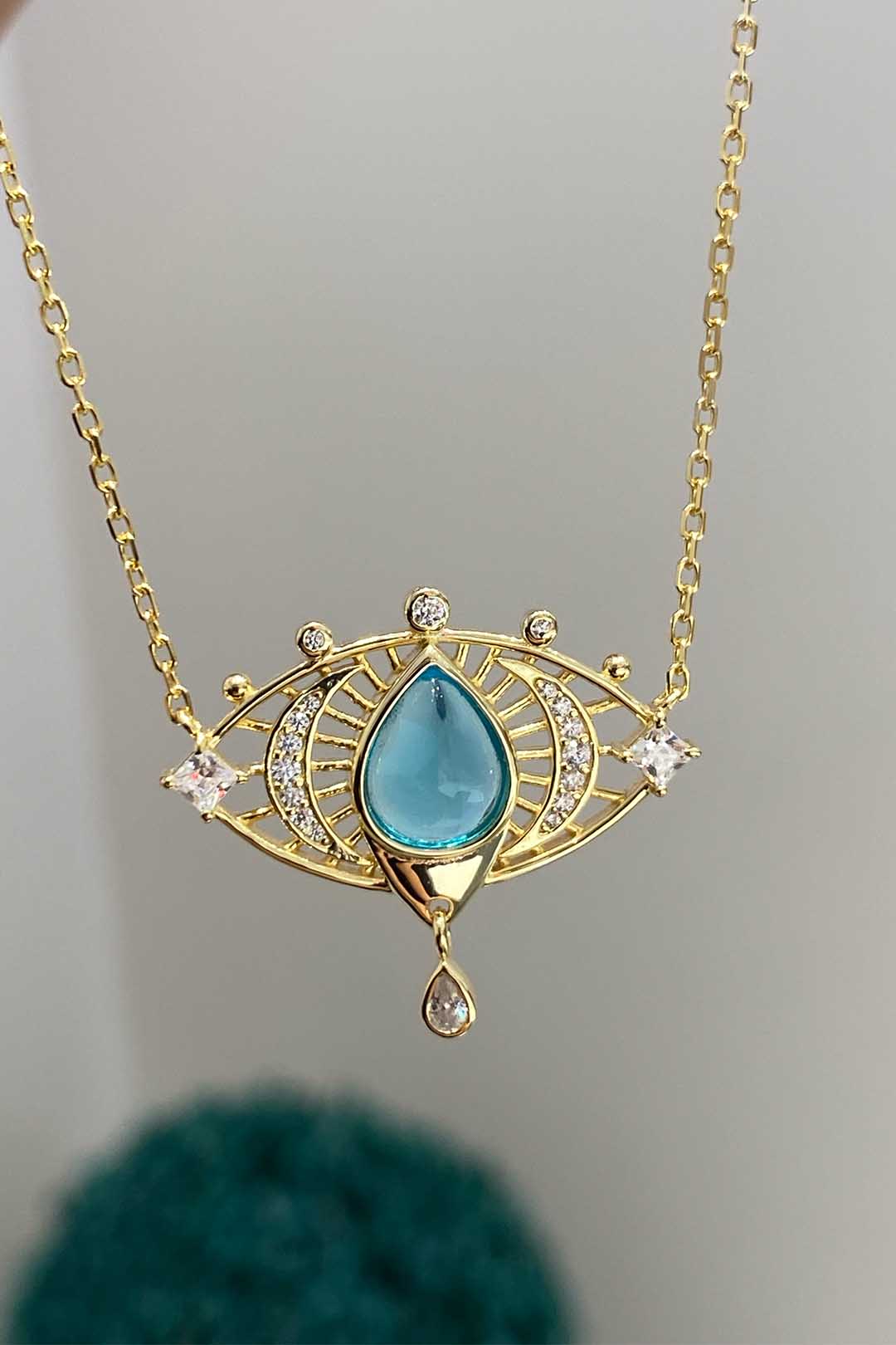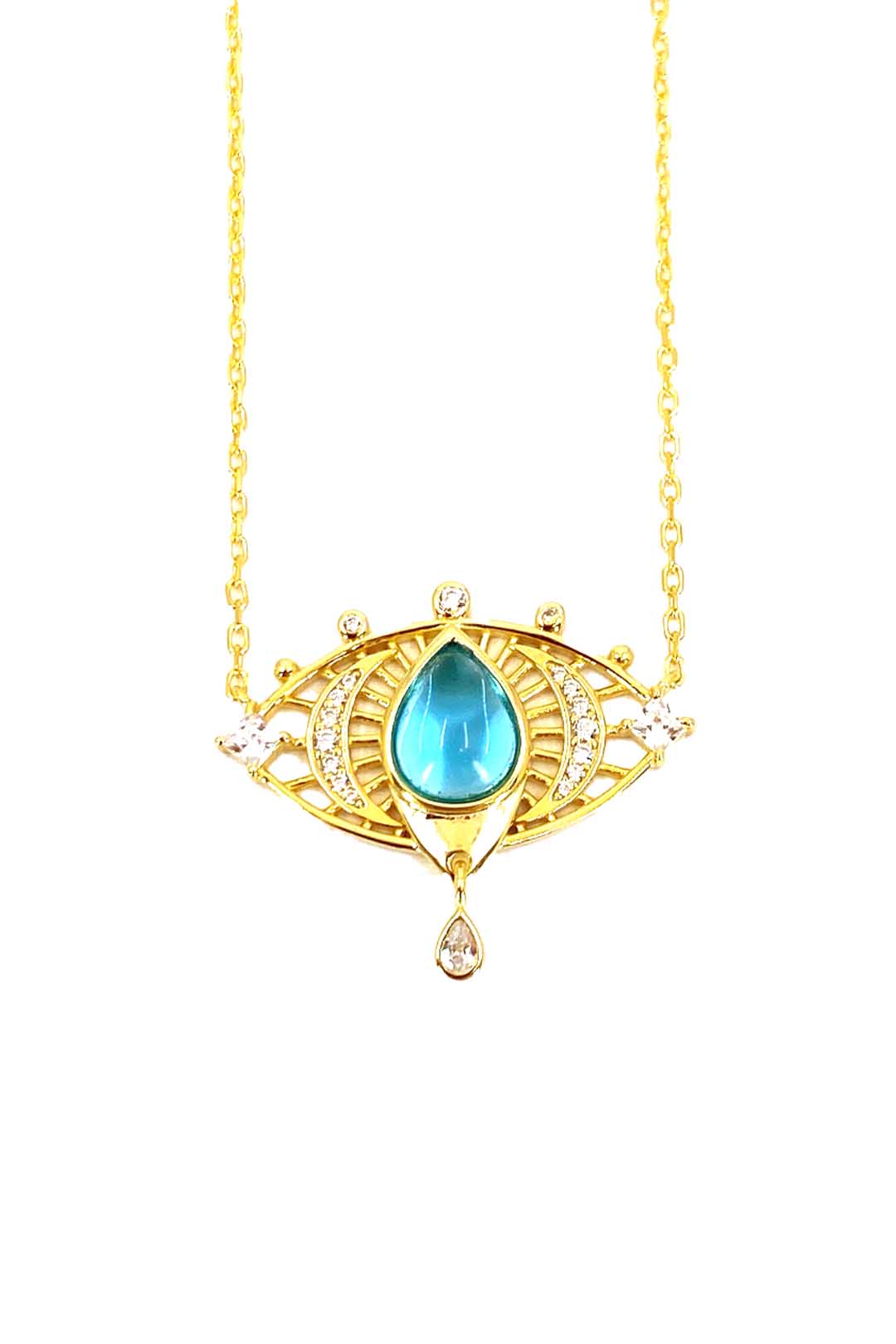 Yeşil Damla Ve İki Karo Göz Gümüş Kolye