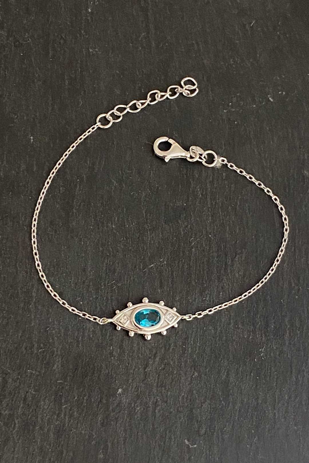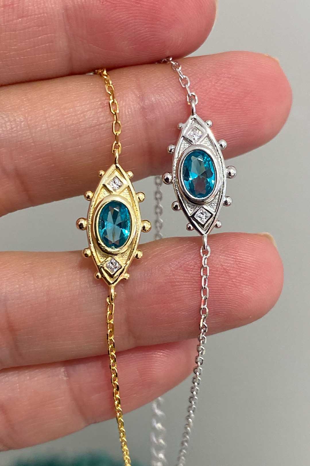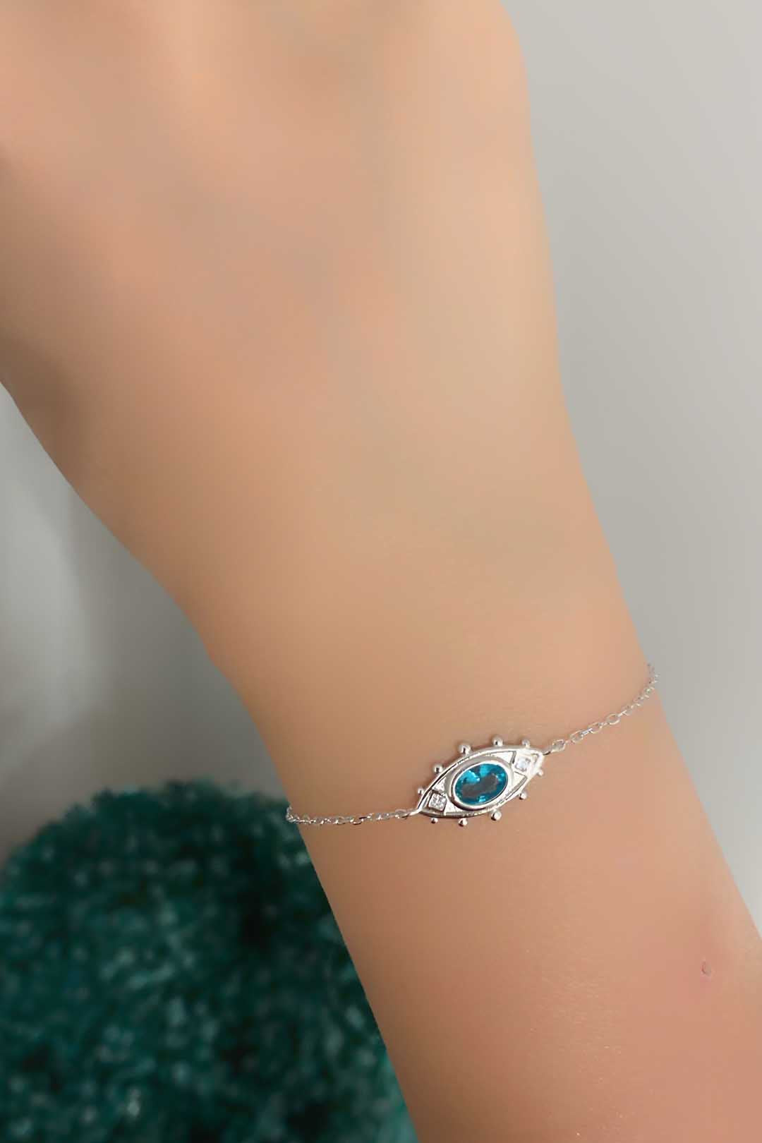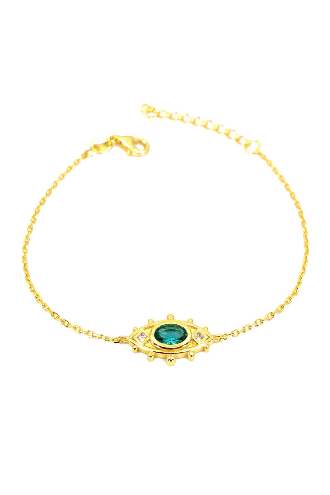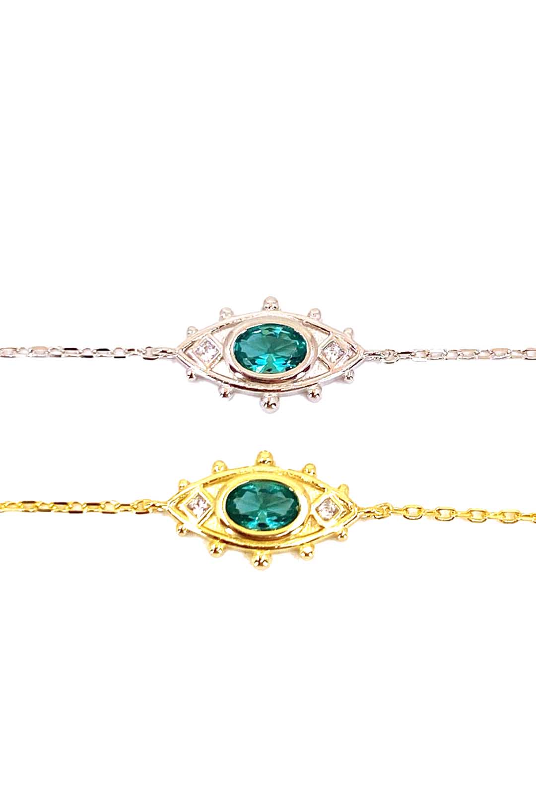 Yeşil Oval Top Detay Göz Gümüş Bileklik