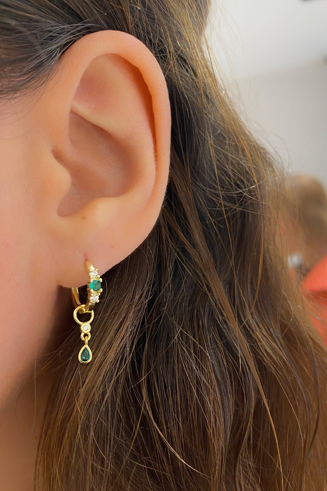 Yeşil Tohum Damla Sallantılı Mix Gümüş Halka Küpe