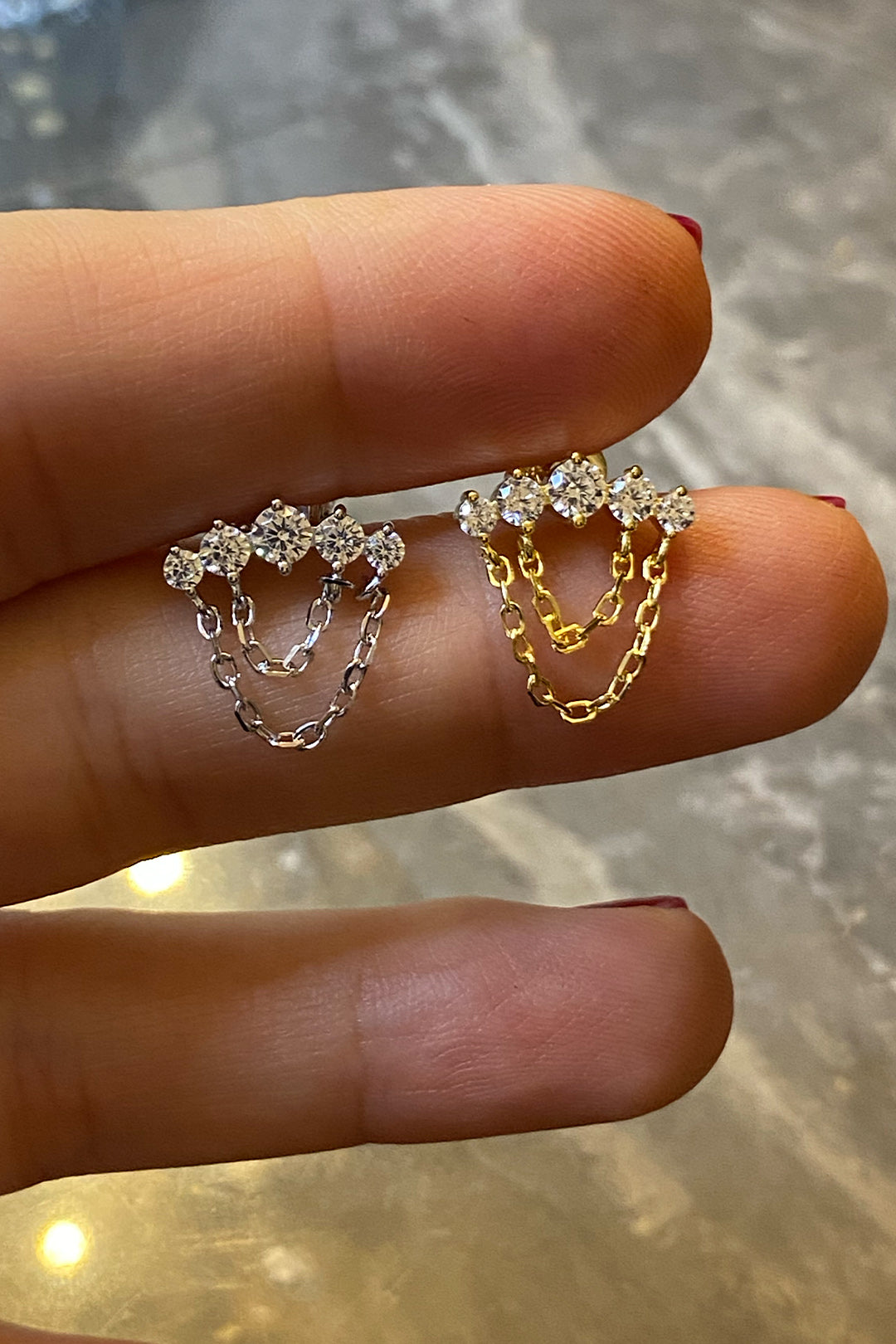 Zincir Boğum Yay Beş Taş Gümüş Çivili Küpe